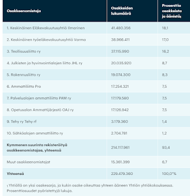 suuri omistajaosuus selittyy sillä, että ne yrittävät eläkevakuutusyhtiöinä